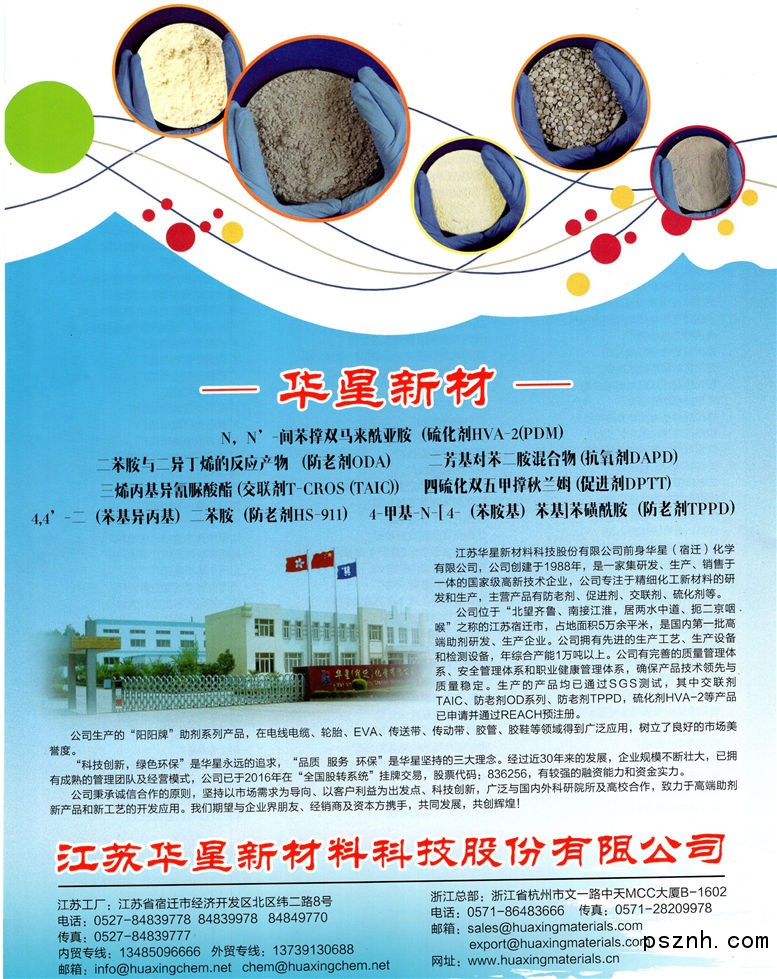 江蘇華星新材料科技股份有限公司 防老劑、促進(jìn)劑、交聯(lián)劑、硫化劑