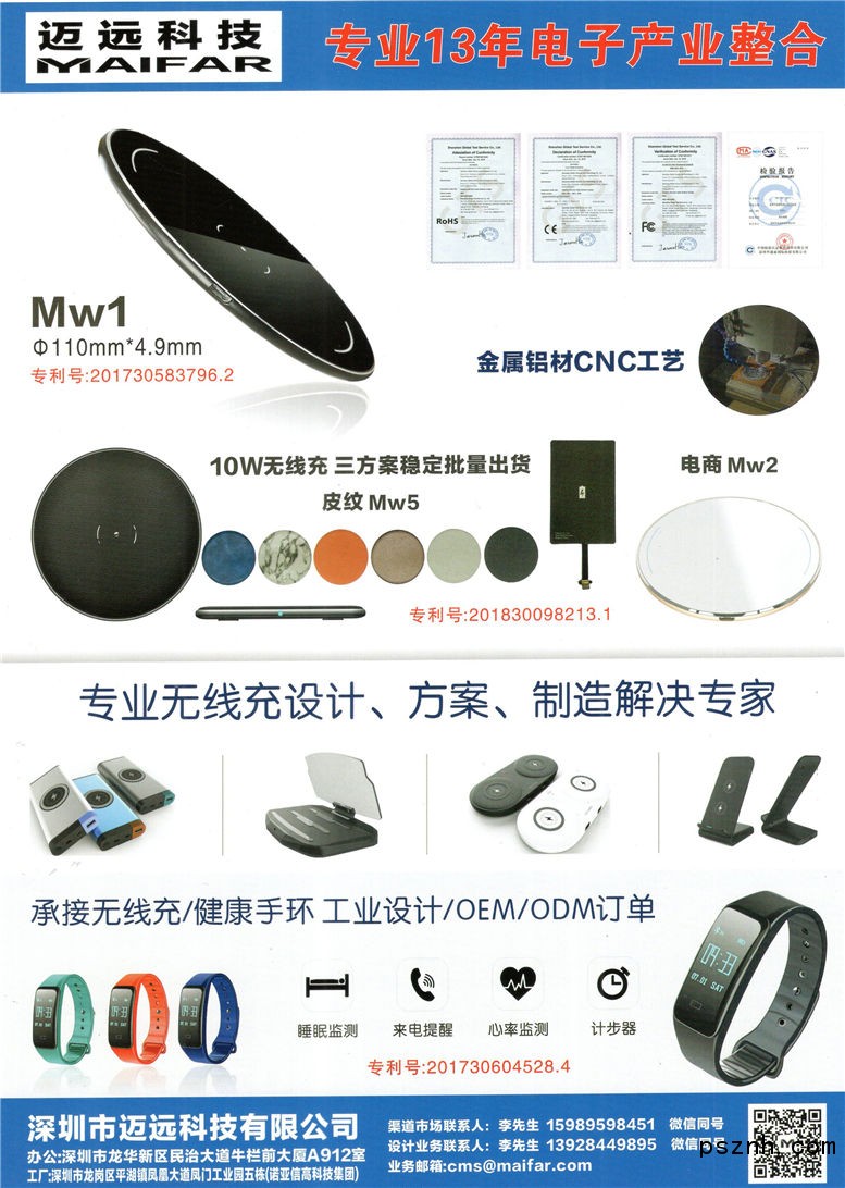 深圳市邁遠(yuǎn)科技有限公司 無線充電器 智能健康手環(huán)