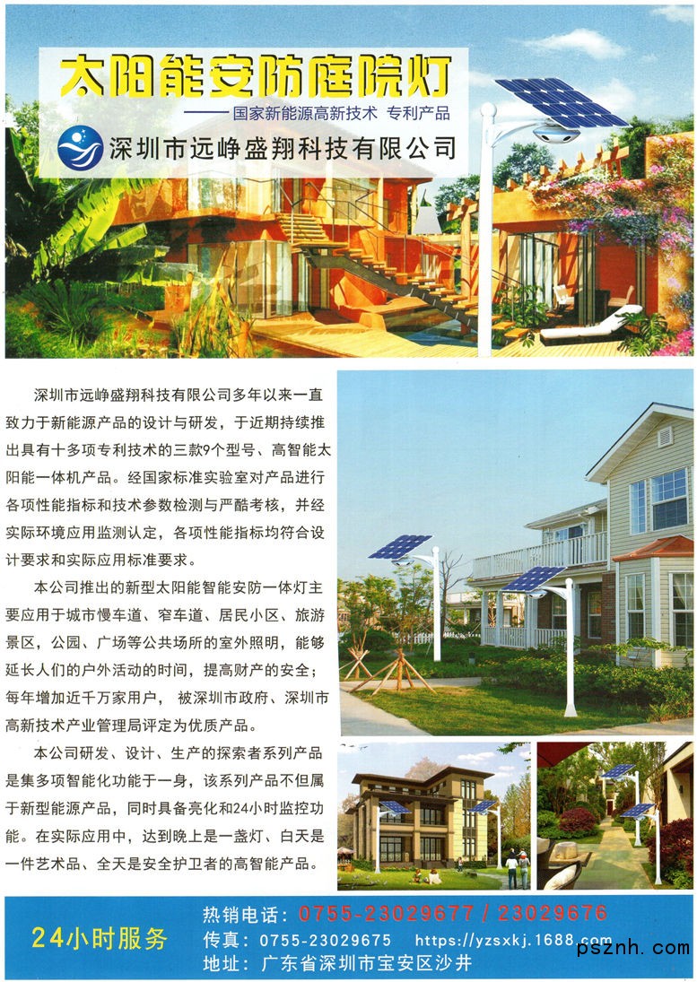 深圳市遠(yuǎn)崢盛翔科技有限公司 太陽(yáng)能風(fēng)光互補(bǔ)路燈、太陽(yáng)能路燈、太陽(yáng)能庭院燈、草坪燈點(diǎn)擊:469 查看原圖![]() ![]() ![]() 簡(jiǎn)介: