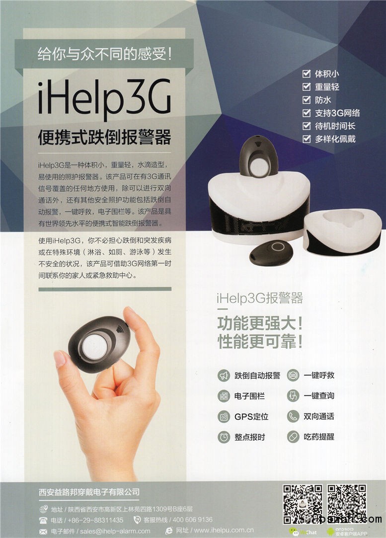 智能跌倒報警器_健康保護(hù)器-西安益路邦穿戴電子有限公司點擊:903 查看原圖![]() ![]() ![]() 地址:陜西省西安市高新區(qū)上林苑四路1309號B座6層