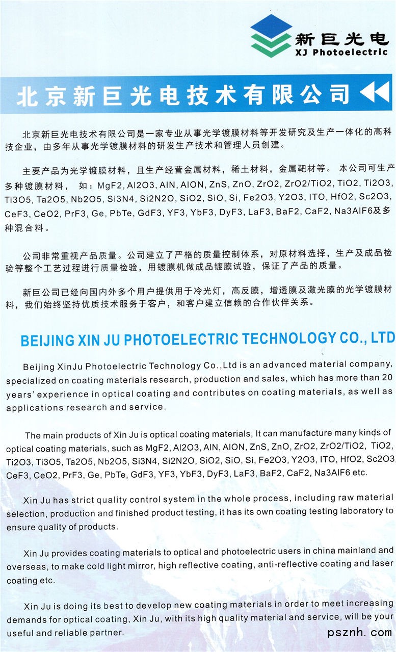 北京新巨光電技術(shù)有限公司 金屬材料_稀土材料_靶材點(diǎn)擊:582 查看原圖![]() ![]() ![]() 公司地址: