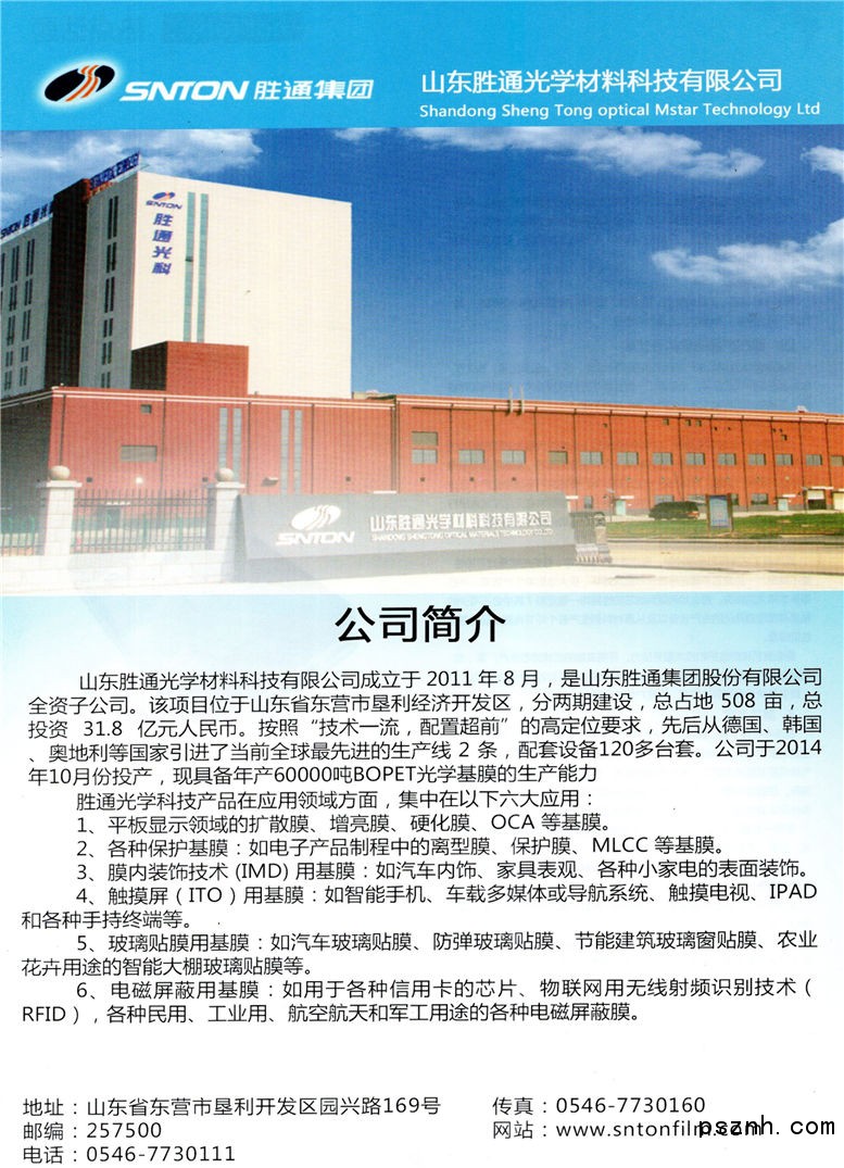 山東勝通光學(xué)材料科技有限公司 擴(kuò)散膜_增亮膜_硬化膜