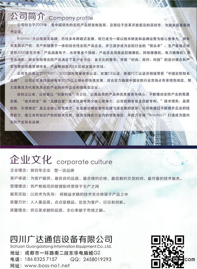 四川廣達(dá)通信設(shè)備有限公司 監(jiān)控設(shè)備; 網(wǎng)絡(luò)監(jiān)控器; BOSS NO1博視壹號監(jiān)控設(shè)備; 監(jiān)控攝像機(jī)