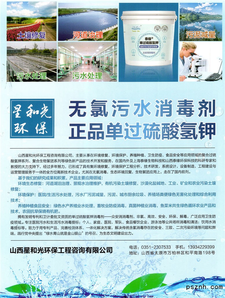 山西星和光環(huán)保工程咨詢有限公司 無氯消毒_生態(tài)環(huán)境回復(fù)_生物絮團點擊:495 查看原圖![]() ![]() ![]() 電話:0351-2307533(武女士)