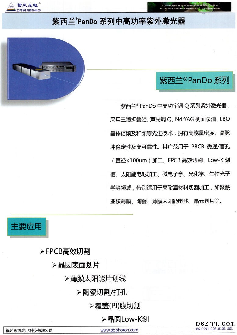 福州紫鳳光電科技有限公司 CM系列精密光學(xué)倒角機(jī) PanDo 調(diào)Q系列紫外激光器點(diǎn)擊:668 查看原圖![]() ![]() ![]() 地址:福州市閩候荊溪鎮(zhèn)沙溪56號1幢2層