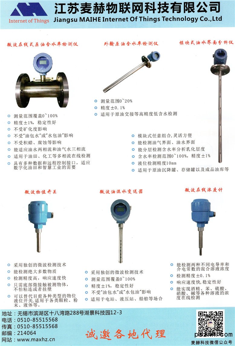 江蘇麥赫物聯(lián)網(wǎng)科技有限公司 在線式原油含水率檢測儀 在線式原油三相流綜合檢測儀 原油沉降罐界面智能分析系統(tǒng)點擊:1166 查看原圖![]() ![]() ![]() 地 址:無錫市十八灣路288號湖景科技園12號樓3單元