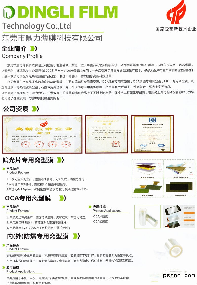 東莞市鼎力薄膜科技有限公司 偏光片專用離型膜 AB膠專用離型膜 氟塑離型膜