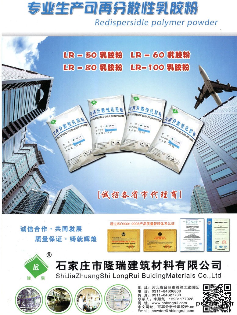 石家莊市隆瑞建筑材料有限公司 可再分散性乳膠粉點(diǎn)擊:773 查看原圖![]() ![]() ![]() 石家莊市隆瑞建筑材料有限公司