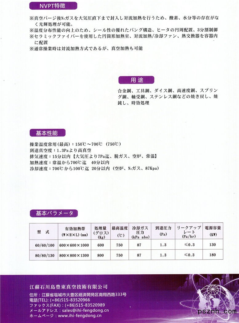 江蘇石川島豐東真空技術(shù)有限公司 真空回火爐NVPT系列 真空滲碳爐VCB系列 真空脫脂清洗機HWBV系列點擊:491 查看原圖![]() ![]() ![]() 江蘇石川島豐東真空技術(shù)有限公司