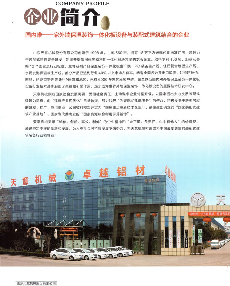 山東天意機(jī)械股份有限公司 PC 裝備 墻板裝備 保溫裝飾一體化板