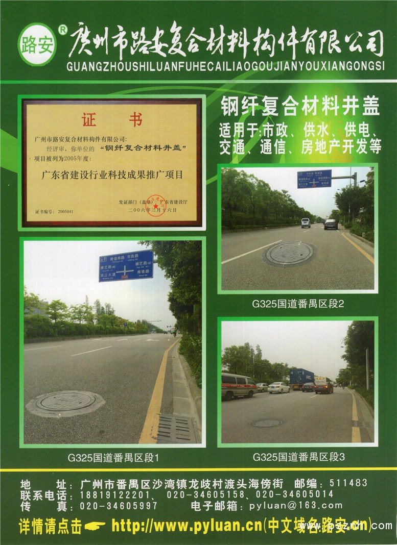 廣州市路安復(fù)合材料構(gòu)件有限公司 復(fù)合材料沙井蓋_鋼纖復(fù)合材料井蓋點(diǎn)擊:539 查看原圖![]() ![]() ![]() 電 話: