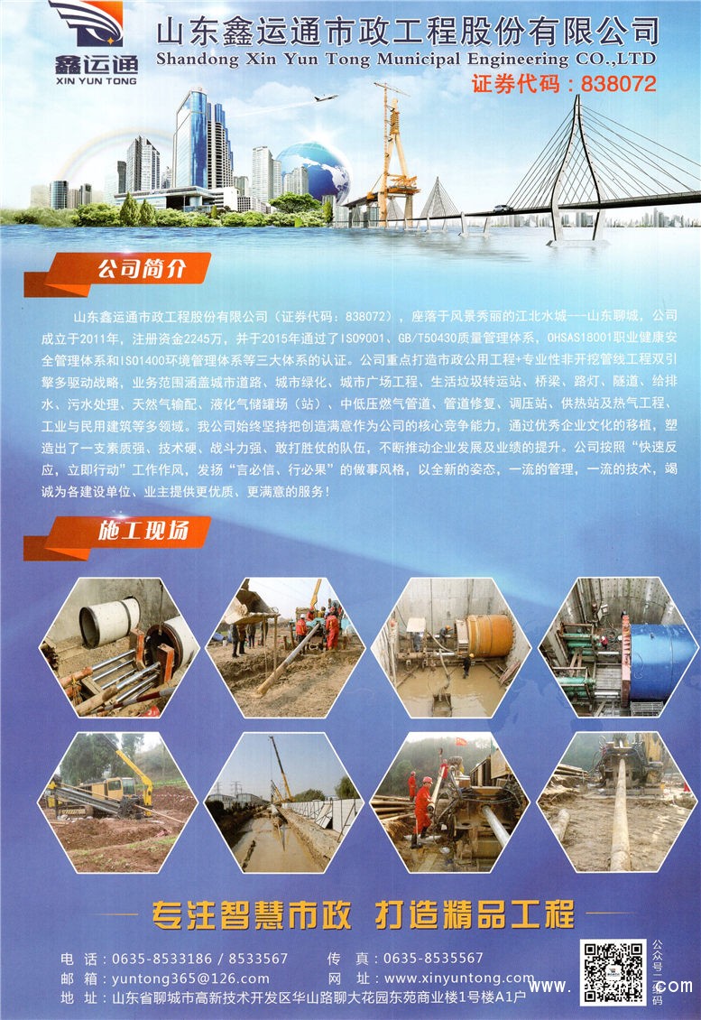 山東鑫運(yùn)通市政工程股份有限公司 管線工程_管道工程_非開挖工程