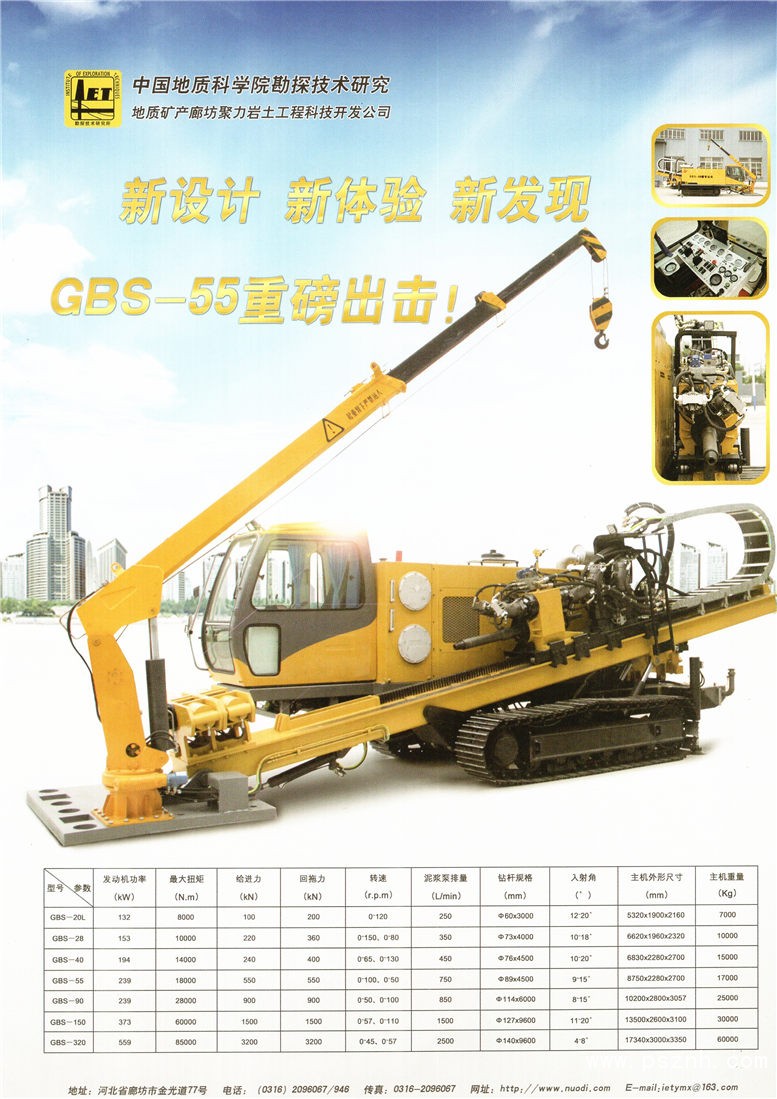 中國地質(zhì)科學(xué)院勘探技術(shù)研究所 GBS系列非開挖鋪管鉆機(jī)_H系列氣動夯管錘_M系列氣動矛