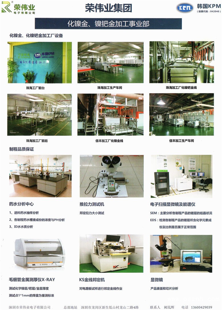 深圳市榮偉業(yè)電子有限公司 無氰化學(xué)鍍鎳鈀金_無氰電鍍薄金_無氰電鍍厚金點(diǎn)擊:500 查看原圖![]() ![]() ![]() 公司地址 深圳市龍崗區(qū)新生低山村龍山二路4號(hào)