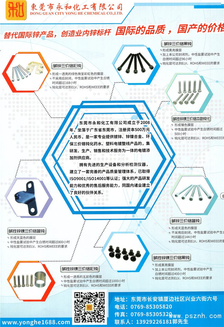 東莞市永和化工有限公司 鍍鋅電鍍添加劑_鋅鎳電鍍添加劑_塑膠電鍍添加劑點擊:595 查看原圖![]() ![]() ![]() 東莞市永和化工有限公司