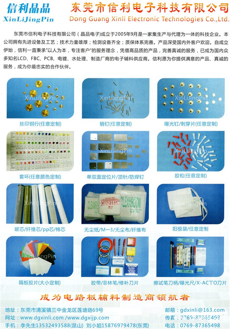 東莞市信利電子科技有限公司 曝光釘_定位片_無(wú)塵紙點(diǎn)擊:408 查看原圖![]() ![]() ![]() 全國(guó)服務(wù)熱線: