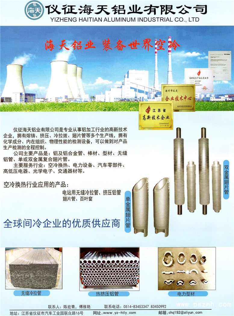 儀征海天鋁業(yè)有限公司 鋁管 鋁棒 鋁型材 翅片管點擊:515 查看原圖![]() ![]() ![]() 儀征海天鋁業(yè)有限公司
