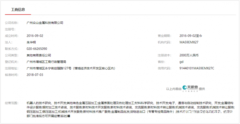 | 公司名稱: | 廣州眾山金屬科技有限公司 | ||