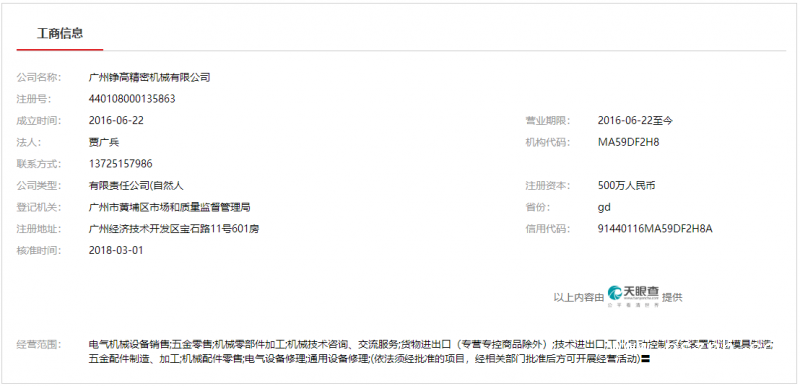 | 公司名稱: | 廣州錚高精密機(jī)械有限公司 | ||