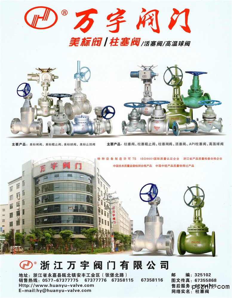 溫州萬宇閥門管件有限公司 柱塞閥 柱塞截止閥 柱塞閘閥點擊:601 查看原圖![]() ![]() ![]() 電話:86-0577-67377775
