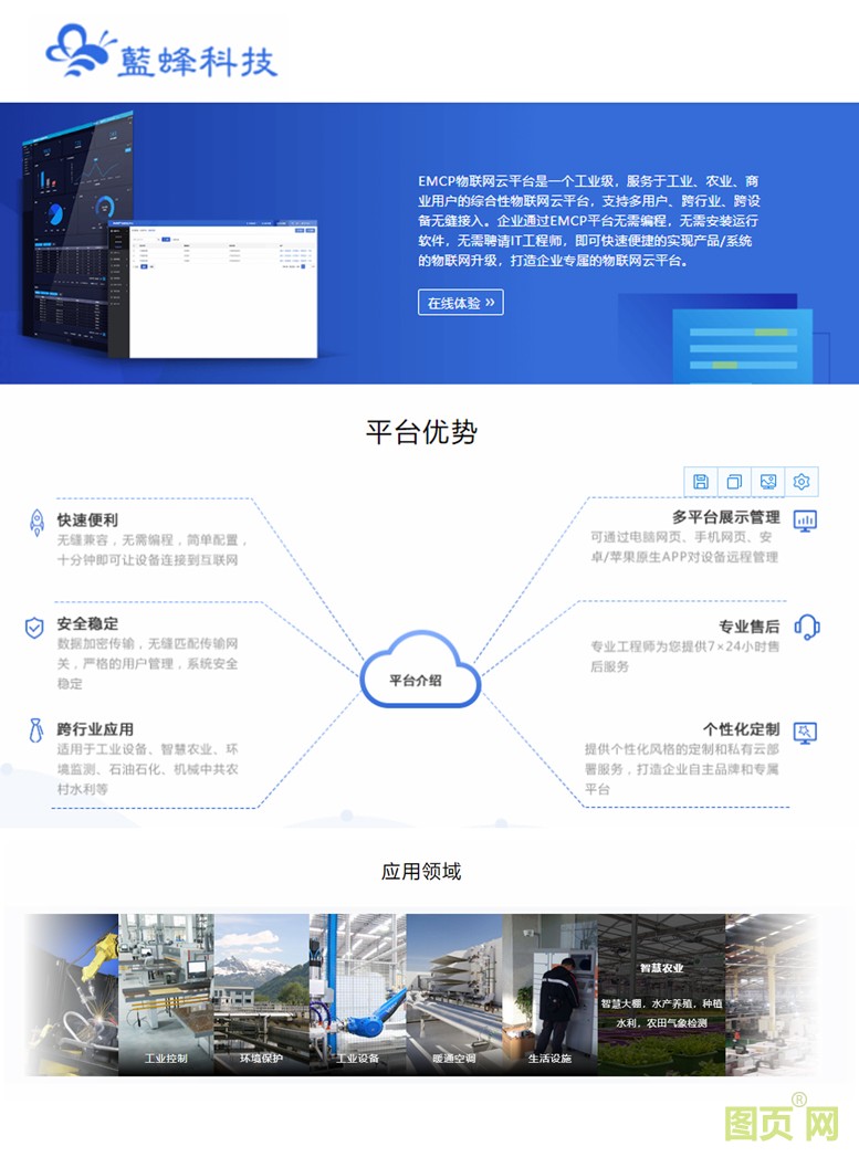 河北藍蜂信息科技有限公司(簡稱:藍蜂科技)位于石家莊市高新區(qū)物聯(lián)網(wǎng)大廈,專注于工業(yè)、農(nóng)業(yè)物聯(lián)網(wǎng)平臺和設(shè)備的研發(fā)和推廣,主營工業(yè)物聯(lián)網(wǎng)云平臺、農(nóng)業(yè)物聯(lián)網(wǎng)云平臺、農(nóng)業(yè)溯源系統(tǒng)、無線數(shù)傳模塊、在線傳感器、儀器儀表等產(chǎn)品。藍蜂科技擁有強大的研發(fā)工程師團隊,擅長于軟件系統(tǒng)開發(fā),遠程通信,手機APP,嵌入式軟硬件開發(fā)和應(yīng)用。