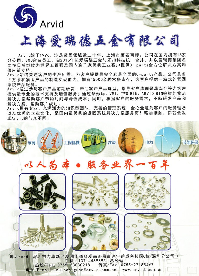 上海愛瑞德五金有限公司深圳分公司 螺栓 螺栓 螺母 螺釘 木螺釘 自攻釘 墊圈 擋圈