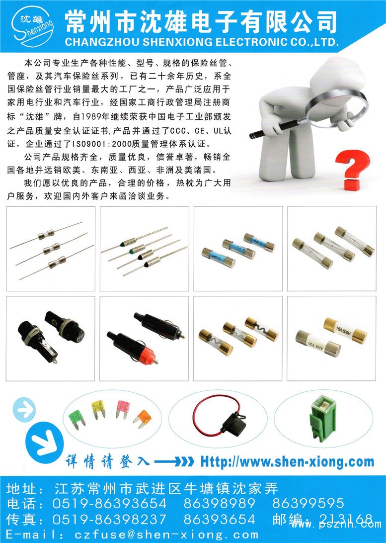 常州市沈雄電子有限公司 微型玻璃保險絲管(快斷) 玻璃保險絲管(快斷) 玻璃保險絲管(延時型)