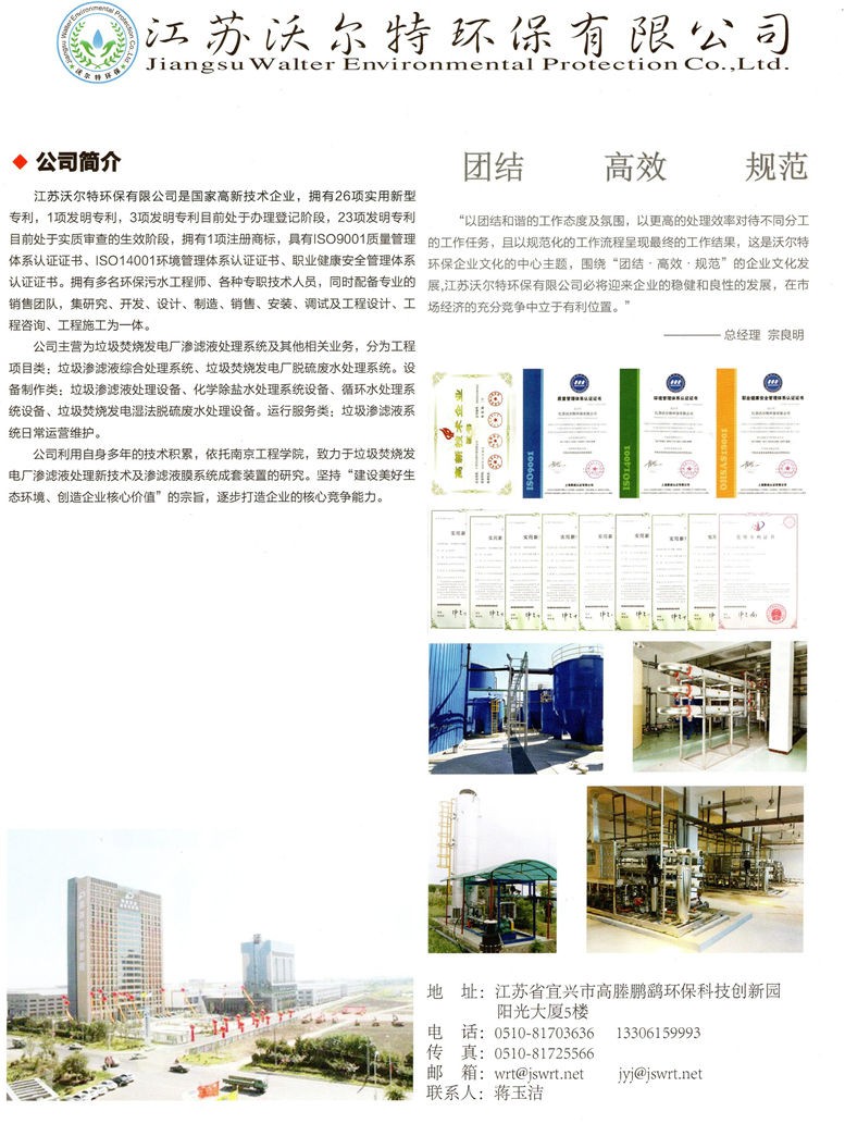 | 公司名稱: | 江蘇沃爾特環(huán)保有限公司 | ||