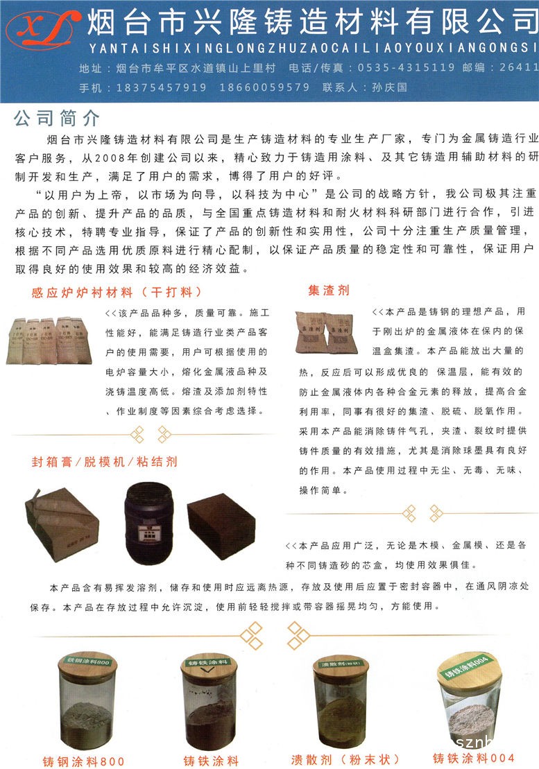 | 公司名稱: | 煙臺(tái)市興隆鑄造材料有限公司 | ||