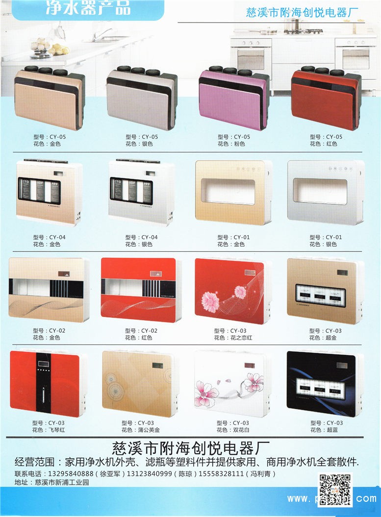 慈溪市附海創(chuàng)悅電器廠 家用凈水機(jī)外殼 濾瓶等塑料件并提供家用 商用凈水機(jī)全套散件點(diǎn)擊:451 查看原圖![]() ![]() ![]() |