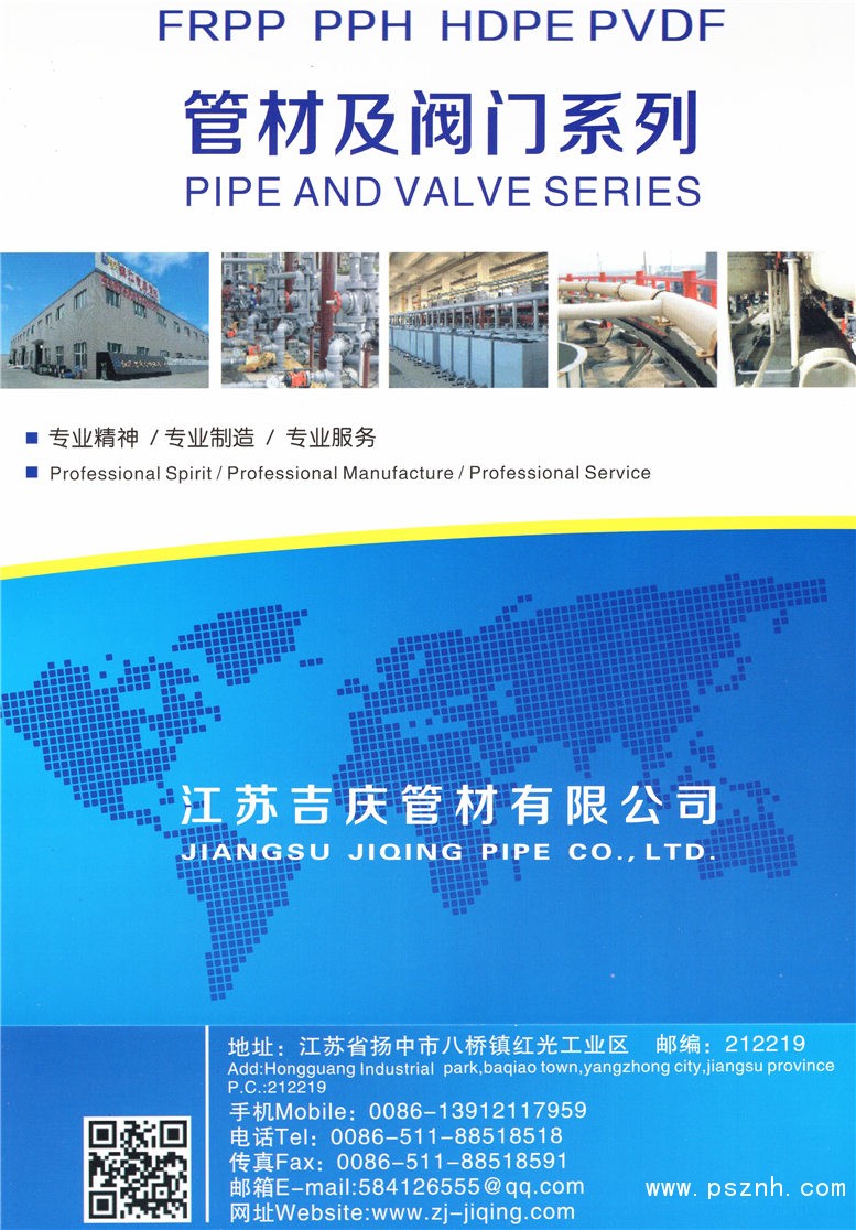 江蘇吉慶管材有限公司 >pp管 >frpp管 >pp風(fēng)管 >pph管 >pph風(fēng)管 >pph管件 >pp管件|frpp管件 >防腐板材 >防腐