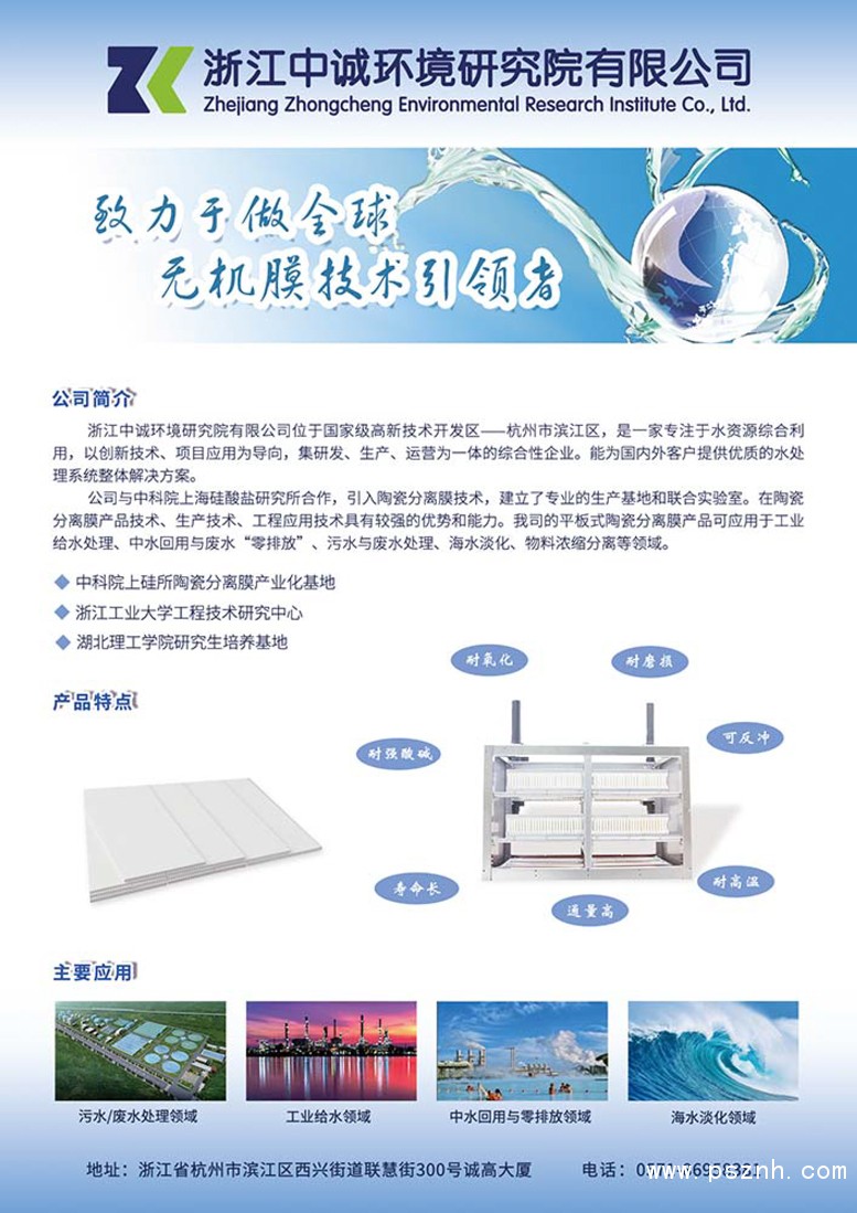 浙江中誠環(huán)境研究院有限公司 工業(yè)中水回用 廢水“零排放” 生活污水處理 海水淡化 物料濃縮分離 陶瓷分離膜技術 陶瓷分離膜模塊化組件點擊:707 查看原圖![]() ![]() ![]() 0571-86959879