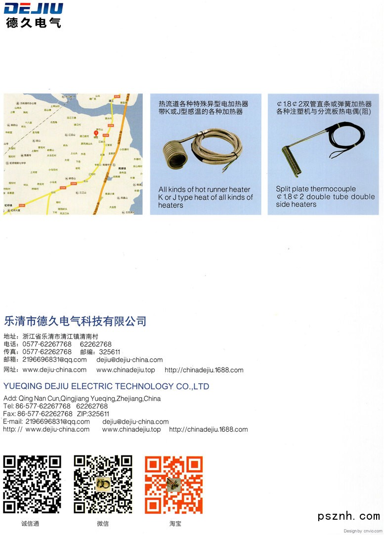 樂(lè)清市德久電氣科技有限公司 單端加熱棒 熱流道各種特殊異型電加熱器 帶K或J型感溫的各種加熱器點(diǎn)擊:516 查看原圖![]() ![]() ![]() 地址:浙江省樂(lè)清市清江鎮(zhèn)清南村
