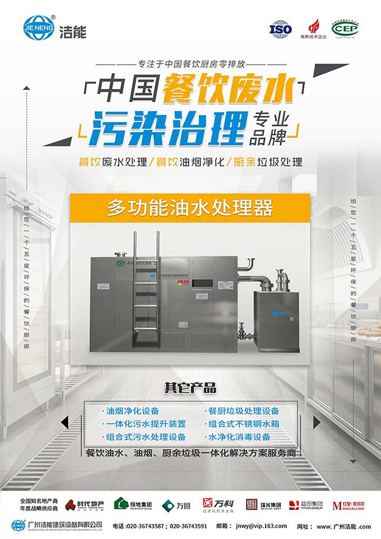 “潔能”始創(chuàng)于上世紀九十年代末,一直致力于中國環(huán)保事業(yè)的發(fā)展。2003年開始專注中國餐飲含油廢水處理技術(shù)的研究,是華南區(qū)首家專業(yè)從事餐飲油水處理設(shè)備的生產(chǎn)企業(yè),十幾年的企業(yè)發(fā)展和產(chǎn)品革新歷程,使“潔能”成為行業(yè)領(lǐng)導品牌。