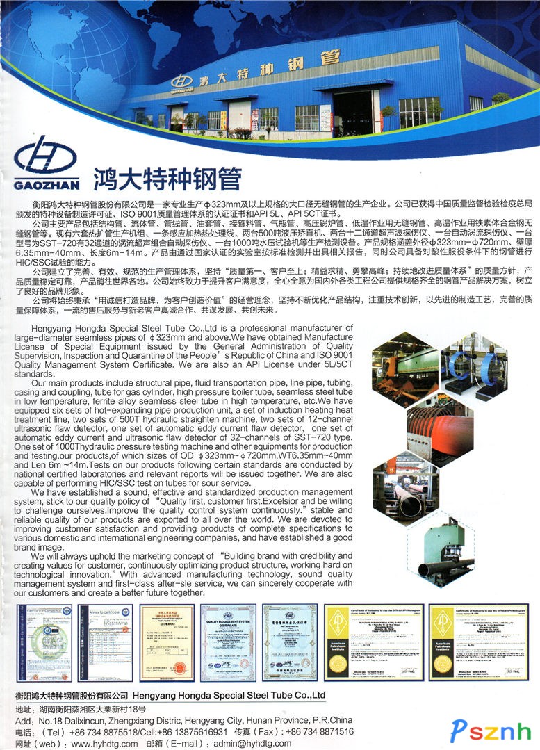 | 公司名稱: | 衡陽鴻大特種鋼管股份有限公司 | ||