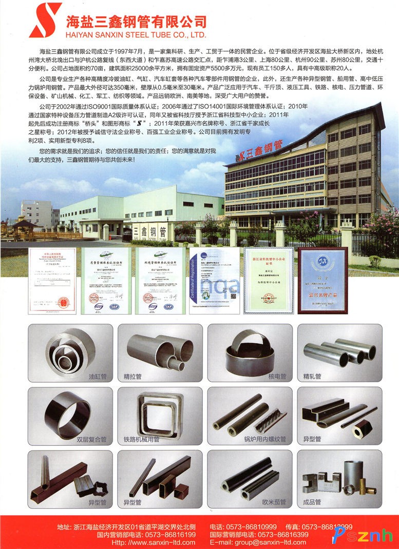 | 公司名稱: | 海鹽三鑫鋼管有限公司 | ||
