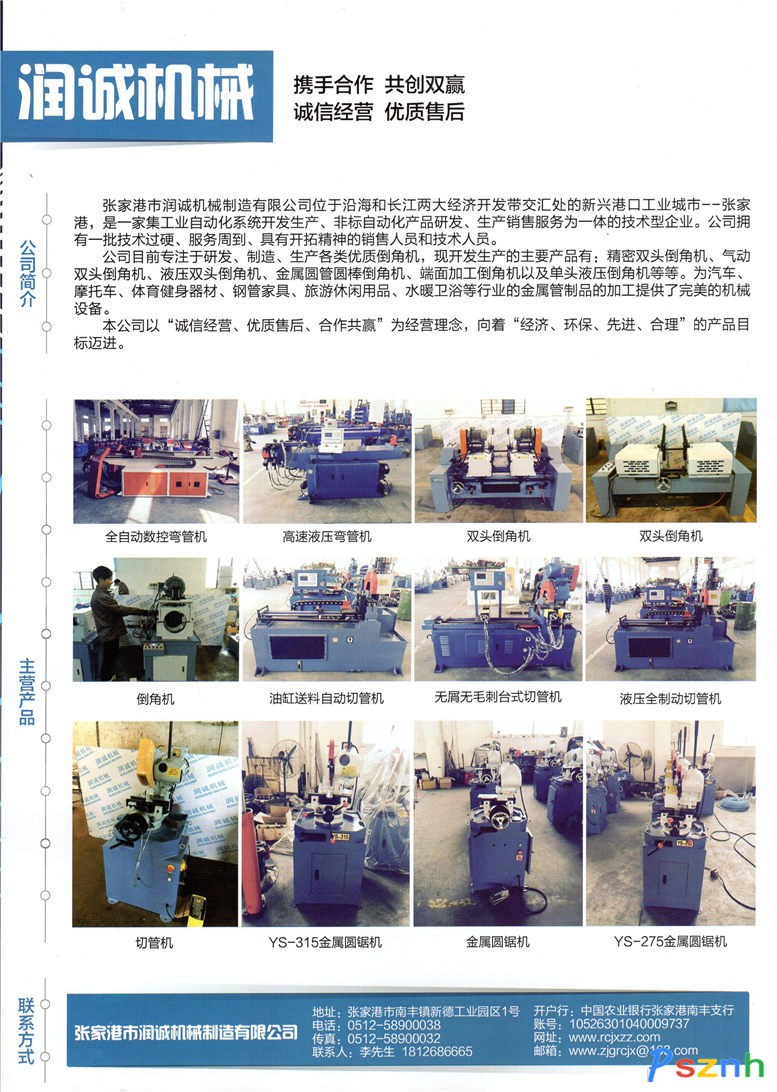 張家港市潤誠機械制造有限公司_精密雙頭倒角機_氣動雙頭倒角機_液壓雙頭倒角機_金屬圓管圓棒倒角機點擊:1618 查看原圖![]() ![]() ![]() 地址:張家港市南豐鎮(zhèn)新德工業(yè)園區(qū)1號