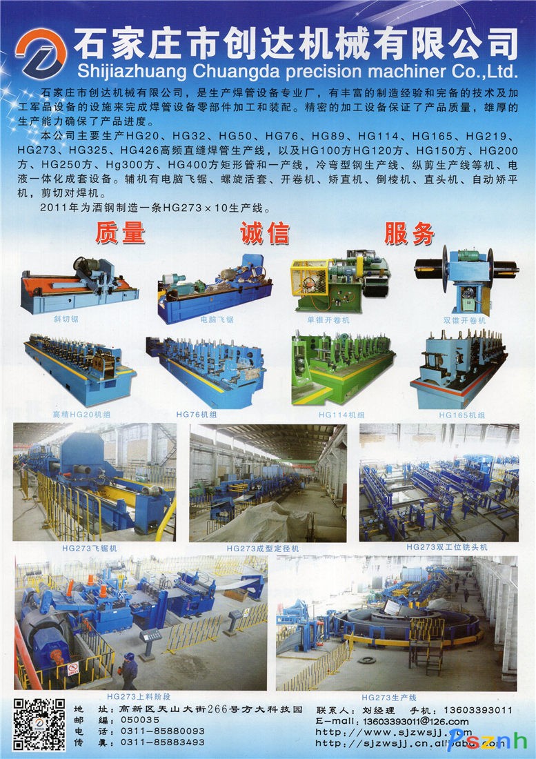 石家莊市創(chuàng)達(dá)機(jī)械有限公司_高頻直縫焊管_方矩型管_冷彎型鋼_縱剪生產(chǎn)線點(diǎn)擊:1030 查看原圖![]() ![]() ![]() 地 址:河北省石家莊高新區(qū)天山大街266號(hào)方大科技園9號(hào)樓1006室