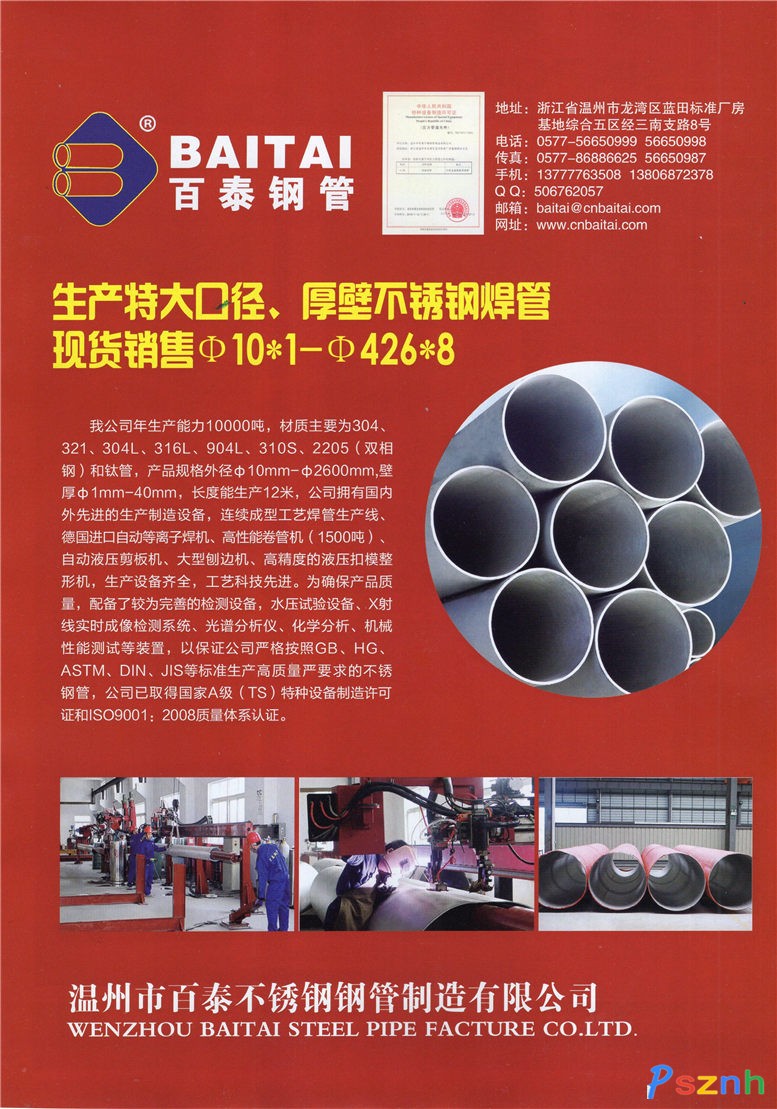 | 公司名稱: | 溫州市百泰不銹鋼管制造有限公司 | ||