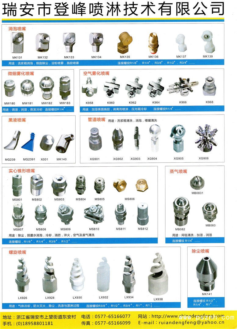 瑞安市登峰噴淋技術有限公司 螺旋噴嘴、工業(yè)噴嘴、冶金噴嘴、噴淋桿、噴淋裝置、過濾器、