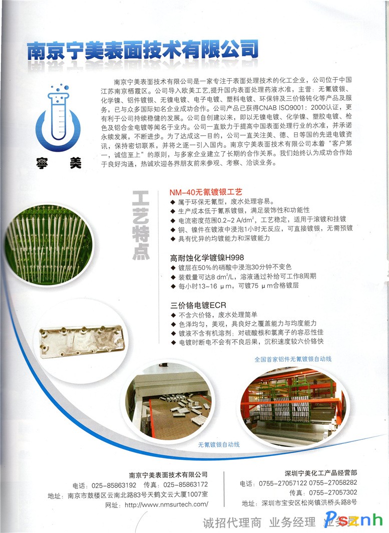 南京寧美表面技術(shù)有限公司 光亮鎳鍍液 電泳漆 塑膠電鍍 槍色 鋁合金電鍍點(diǎn)擊:1260 查看原圖![]() ![]() ![]() 南京寧美表面技術(shù)有限公司