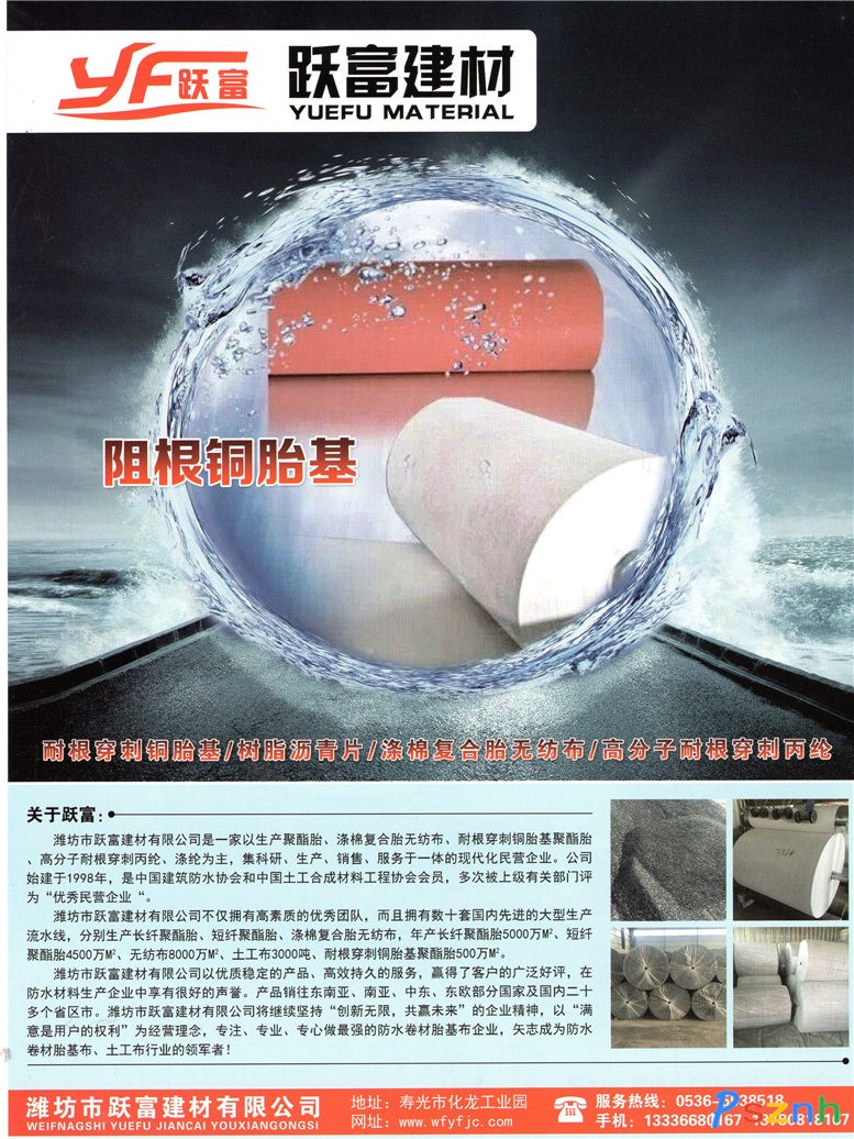 防水涂料系列_自粘防水卷材系列_高分子防水卷材系列_改性瀝青防水卷材-濰坊市躍富建材有限公司點(diǎn)擊:2461 查看原圖![]() ![]() ![]() 公司名稱: 濰坊市躍富建材有限公司