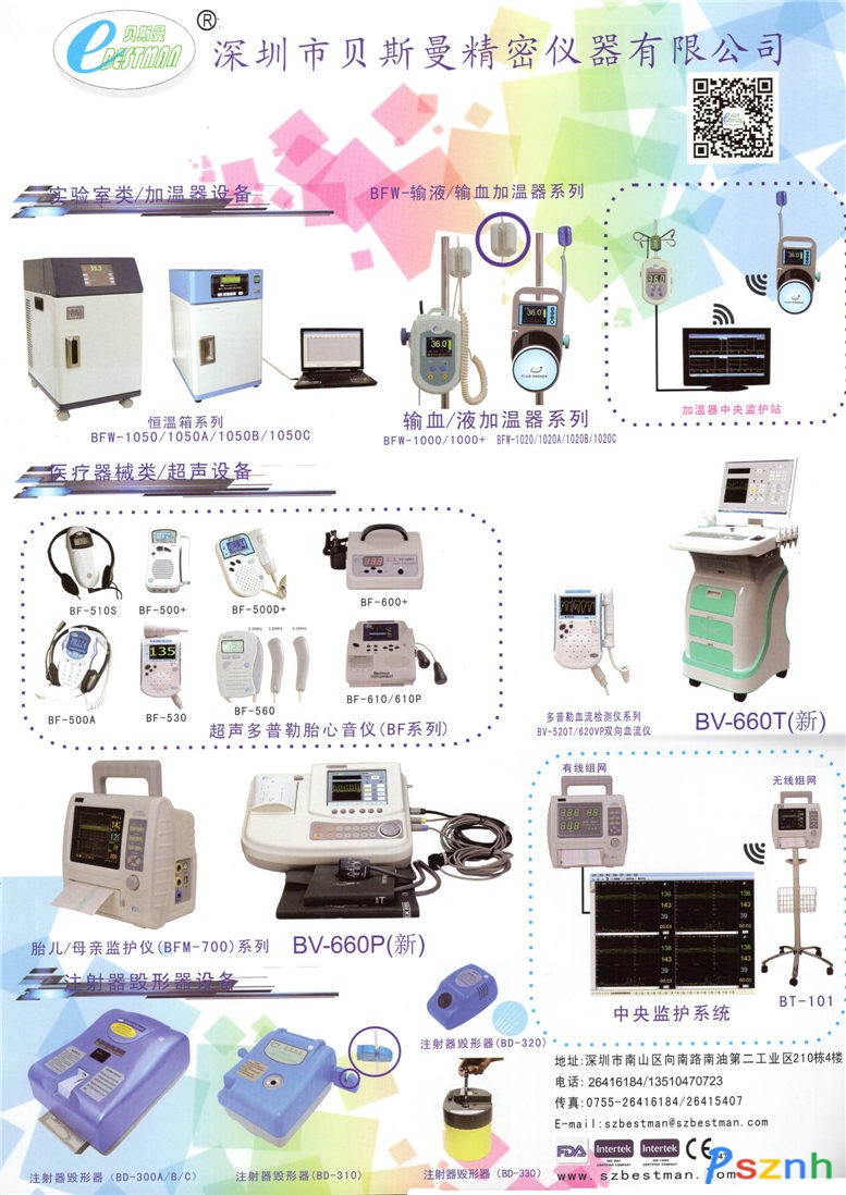 深圳市貝斯曼精密儀器有限公司 BFW-1060醫(yī)用加溫柜 BFP-10喂養(yǎng)泵 BV-520P多普勒血流探測儀