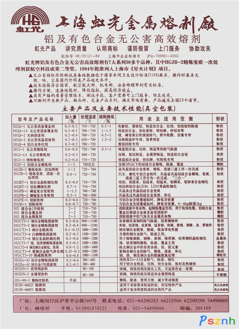 | 公司名稱: | 上海虹光金屬熔劑廠 | ||