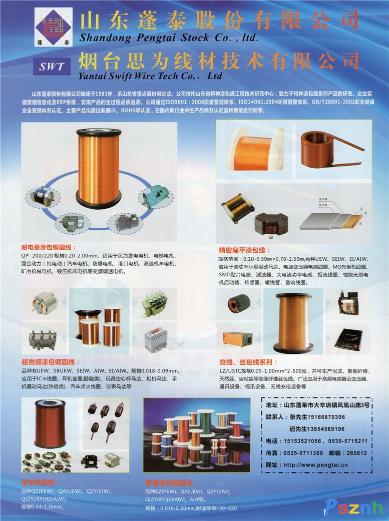 山東蓬泰股份有限公司 特種漆包線 鍍錫銅線 鍍錫銅包鋼線