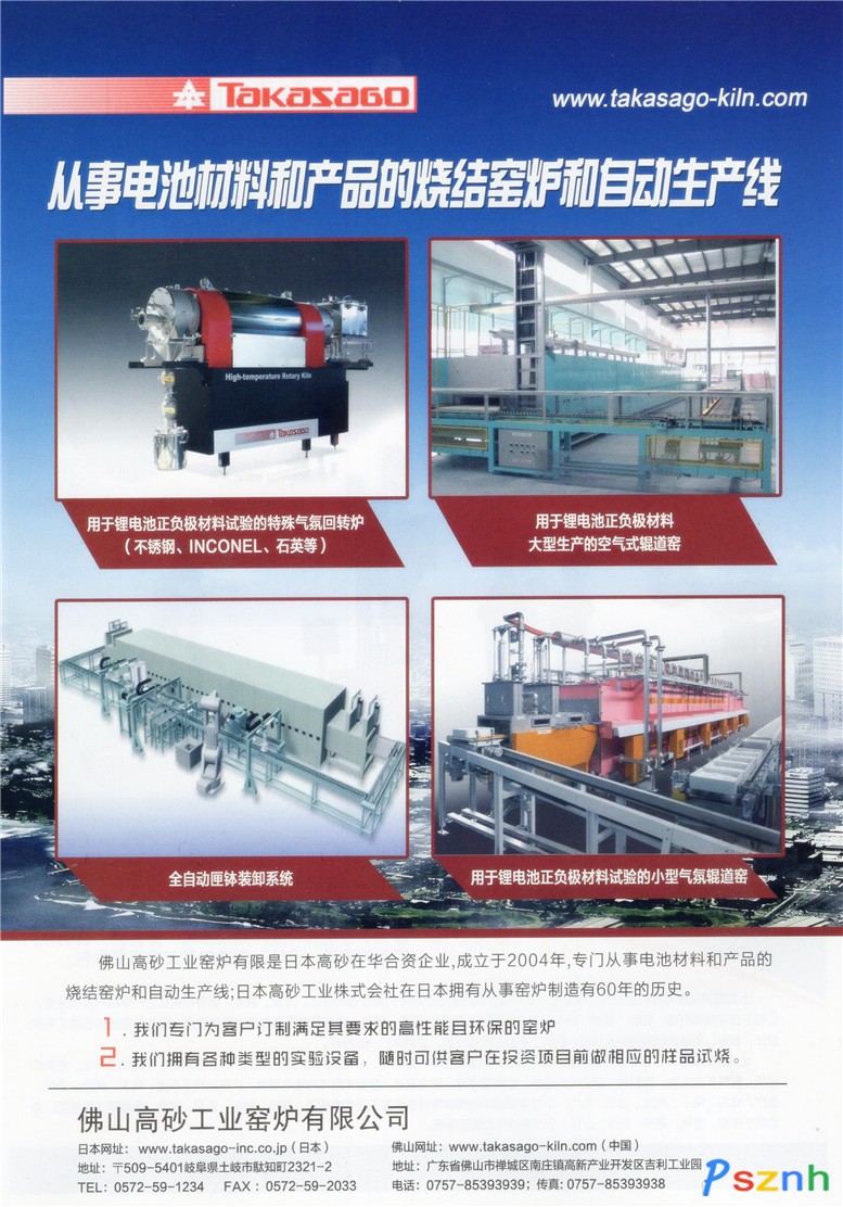 佛山高砂工業(yè)窯爐有限公司 輥道窯 外熱式回轉(zhuǎn)窯 電子陶瓷 建筑陶瓷 耐火材料 晶石耐火材料 深圳電池展