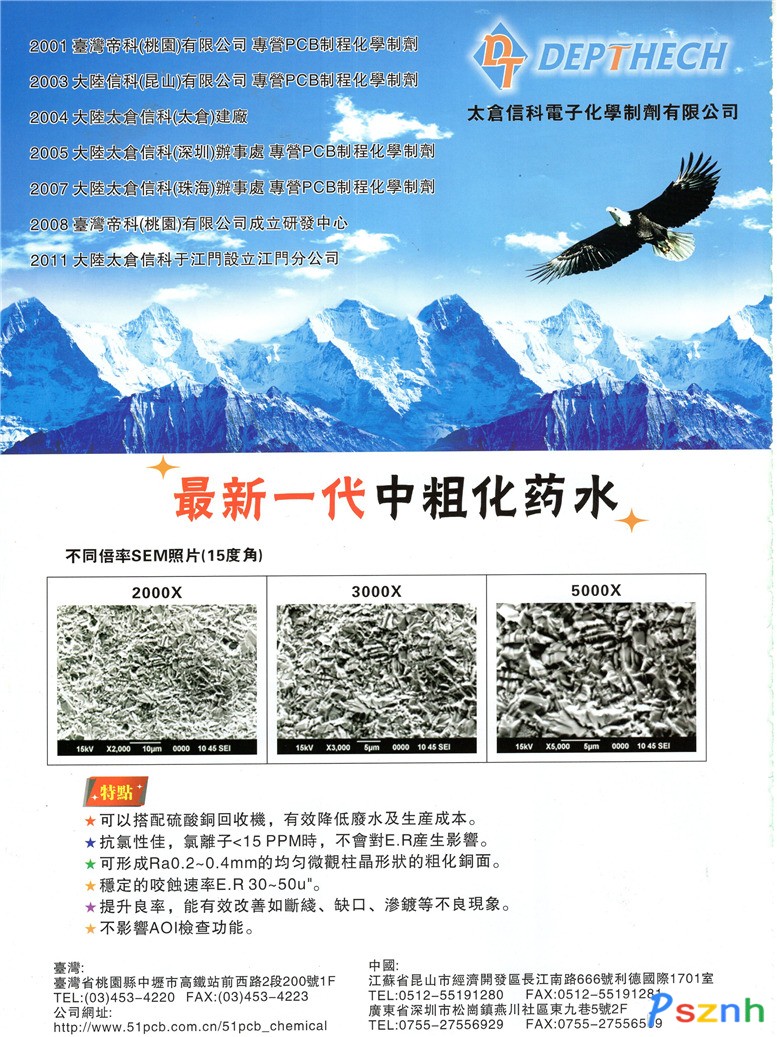 太倉信科電子化學(xué)制劑有限公司 化學(xué)藥水 表面處理的特殊化學(xué)制劑點擊:1040 查看原圖![]() ![]() ![]() 太倉信科電子化學(xué)制劑有限公司