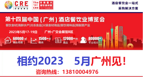搶占新商機(jī),布局新規(guī)劃,采購(gòu)新產(chǎn)品,前瞻新趨勢(shì),優(yōu)享新體驗(yàn),就在2023年5月17日-19日廣州·廣交會(huì)展館B區(qū),2023第十四屆中國(guó)(廣州)酒店餐飲業(yè)博覽會(huì)!2023餐飲業(yè)年度盛會(huì),歡迎您的報(bào)名參與!