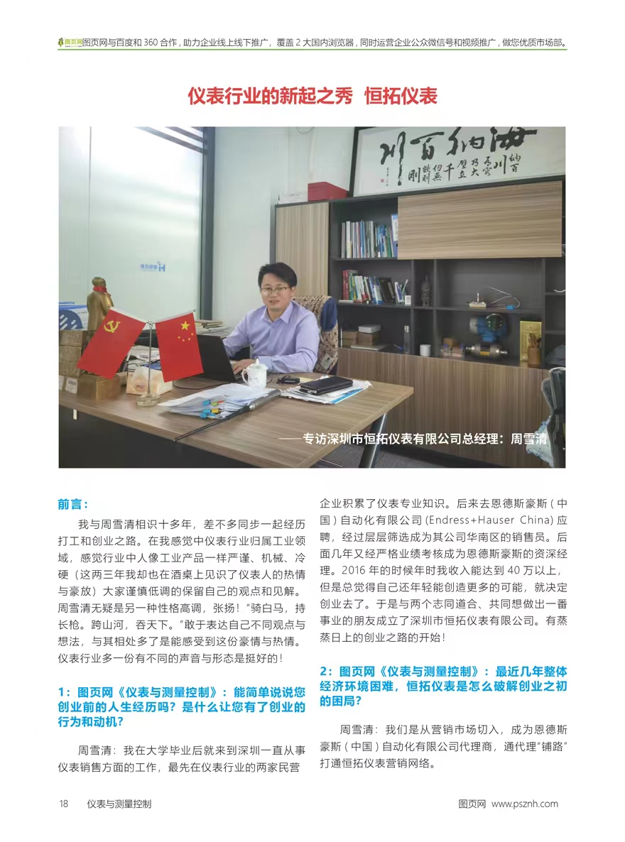 2:圖頁(yè)網(wǎng)《儀表與測(cè)量控制》:最近幾年整體經(jīng)濟(jì)環(huán)境困難,恒拓儀表是怎么破解創(chuàng)業(yè)之初的困局?