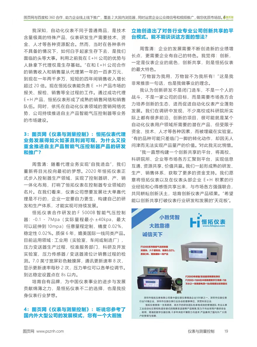 3:圖頁(yè)網(wǎng)《儀表與測(cè)量控制》:恒拓儀表代理業(yè)務(wù)發(fā)展得如火如荼且利潤(rùn)可觀,為什么又投重金推進(jìn)自主產(chǎn)品智能氣壓控制器產(chǎn)品的研發(fā)和推廣?